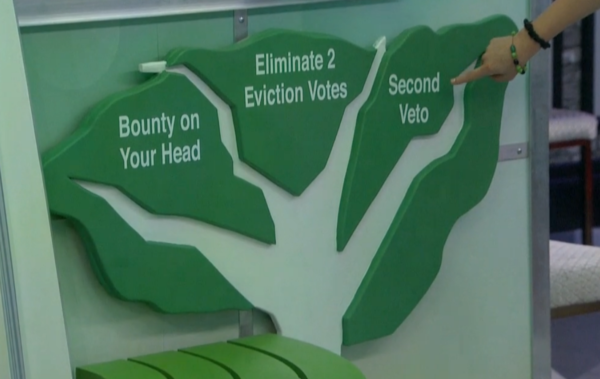 On to the next bit of information, the new twist in the house. we noticed a tree on the wall with five options on it. Eliminate 2 Eviction Votes, Bounty on your Head, Second Veto, Save a Friend and Can’t Play in HOH.