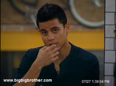 It started around 1pm BBT (check out the Flashback feature on the Feeds) when Kalia and Brendon had it out in the backyard. Brendon had had it with Kalia’s wishy-washy lies. When she–once again–proclaimed herself the “most honest person in the house” Brendon lost his cool, setting off a chain of events that ended with a battle royale in the Big Brother 2011 Kitchen.