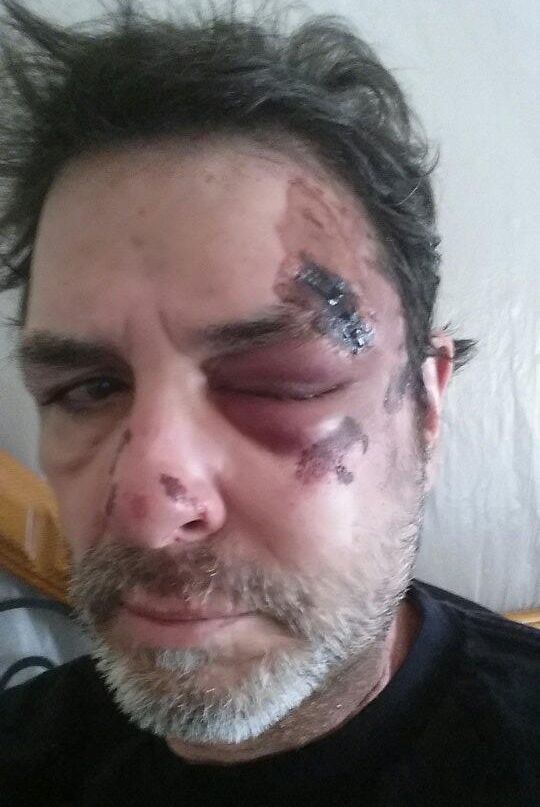Ouch!, that hurts just looking at it. He seriously needs an E.R. visit. Some idiot obviously doesn’t want to take responsibility for their actions. Hope he heals quickly and completely.
