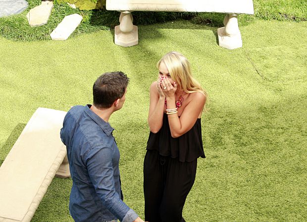 |We all saw Jeff Schroeder and Jordan Lloyd fall in love during their time in the Big Brother house and it finally came full circle when Jeff and Jordan entered the Big Brother 2014 house for a surprise, which ended up being a surprise to Jordan and Jeff getting down on one knee to propose! Whether you like them or not, you have to admit it was cute to see! Check out some photos of the engagement below in our Big Brother 2014 spoilers!