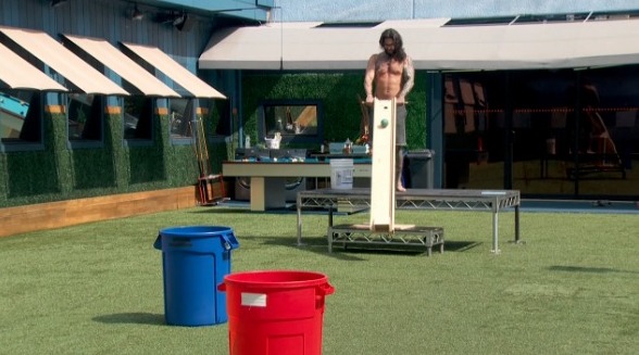 The HGs were on lockdown and they finally opened the backyard up to them and they had a nice surprise: practice time for the HoH competition tonight (4:00pm BBT)! They got about an hour to practice, but it looks like they will be rolling balls down a device and try to shoot them into buckets. I’m am sure it will be much more elaborate tonight, but probably try to score the most points to win HoH. I included some photos below.