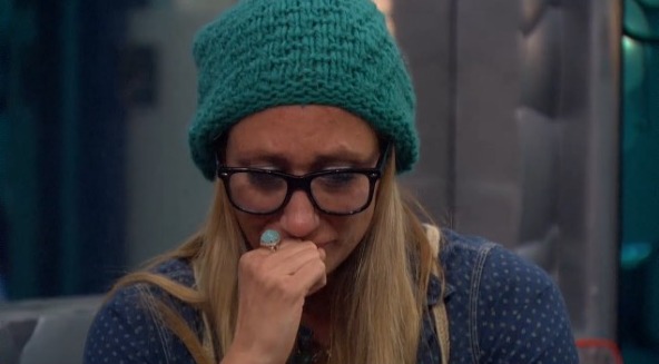 I am not sure where this one came from, but she did get emotional during their intros when the Live Feeds came on when she mentioned her girlfriend. She then kind of disappeared and an hour and a half later, she was in the bathroom and having a breakdown with John. She mentioned not being a phony person and she could win this game, but she said no amount of money was worth being this sad.