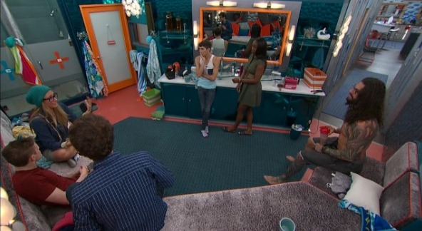 If you have the Live Feeds, then you’ll want to Flashback to 10:38PM BBT. This is the start of the meltdown and it seemed to go on forever. It was Vanessa and John in the bathroom and others joined in the fun, including Steve, Jason, Da’Vonne and Austin. To sum it up, Vanessa is sad (as she said it about one million times)!