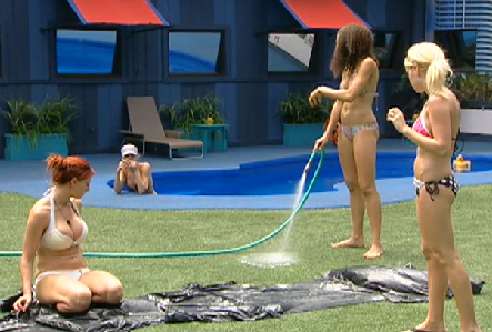 Last night the HG’s were given a giant golf set to play with. This usually has something to do with the HOH comp. Enzo and Ragan were out practicing early. Historically, tonight’s HOH comp will be something along the lines of “Majority Rules” where the HG’s are asked to choose A or B to a question about which answer the majority of the people in the house would choose. Such as “Who do the majority of the people in the house say they would not want to date their little sister? A) Hayden B) Lane”. The trick is not to pick what you think, but what you believe the majority of the house thinks.