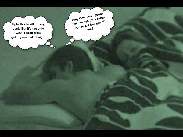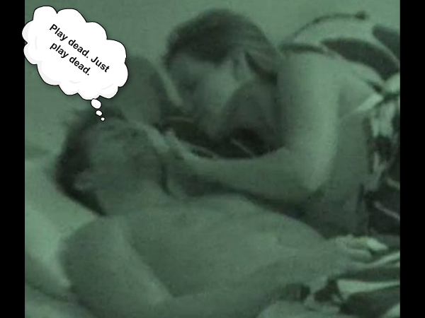 An “acting” drunk Danielle spent most of her night trying to convince Shane to sleep with her- while Shane spent most of the night in defense–until–finally worn down, agreed they could sleep together, but under separate blankets. Even then, Dani rubbed half the poor guy’s belly-skin off before he finally had enough and rolled her over, trying to end the “seduction.”