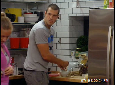 He’s playing the best Newbie game so far. All the Vets like him–though they don’t trust him as far as they can throw him. He won the POV- so he can compete. He’s high on the Vet’s radar. He’ll have to win to stay in. Unless his sweetie, Dani, saves him again.