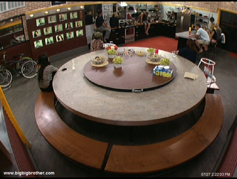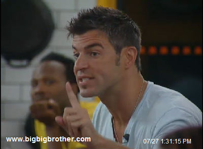 It started around 1pm BBT (check out the Flashback feature on the Feeds) when Kalia and Brendon had it out in the backyard. Brendon had had it with Kalia’s wishy-washy lies. When she–once again–proclaimed herself the “most honest person in the house” Brendon lost his cool, setting off a chain of events that ended with a battle royale in the Big Brother 2011 Kitchen.