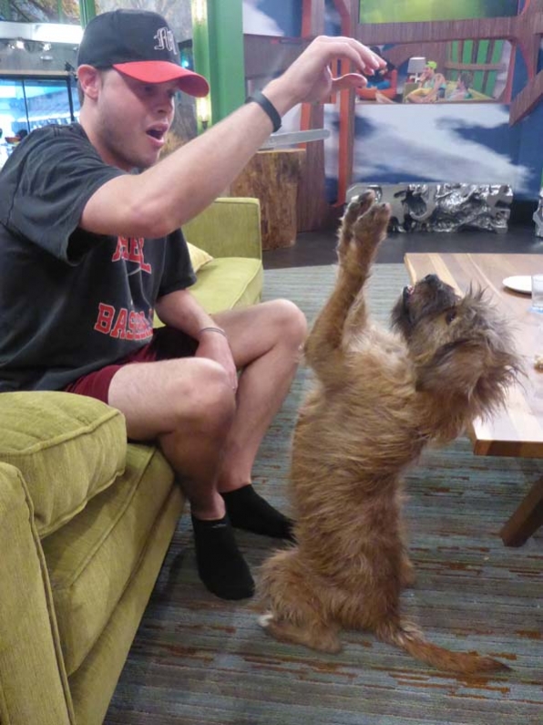 |We have an interesting week ahead of us on Big Brother 2014 and we are all waiting for the Week 12 nominees and that crucial Power of Veto competition on Big Brother 16, but how about some cute pictures of a dog to help pass the time? CBS shared Frankie Grande’s HoH photos and blog with us yesterday and I know how you all love him so much and I almost skipped it, but I could not pass up photos of Izzy, their pet for one day in the Big Brother 2014 house! Check out the photos below in our Big Brother 2014 spoilers!
