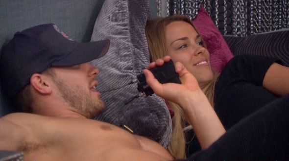 The biggest drama of the day involved Liz, Jeff and a very jealous Austin. If you remember, Austin got very upset over the weekend when Liz slept in the same bed as James. Now Liz was in bed (and under the covers) with Jeff. He was trying to do some campaigning and mentioned the twin thing to her, which she denied. Austin walked in on this and got super pissed.