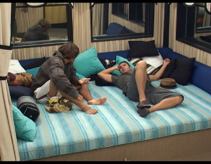 OK- Just warning you guys- If you have not signed up for the LIVE FEEDS yet. Rachel is LOSING it! She is FLIPPING. She is going to turn a corner very soon, and it is going to be EPIC! She has already told Brendan that maybe they shouldn’t not hang out as much this week. ominous.. huh??? They have finally discovered that Brit was faking it with them last week. Brendan is trying to talk her down, again. But it is not looking good. (Actually, for us.. this is AWESOME!)